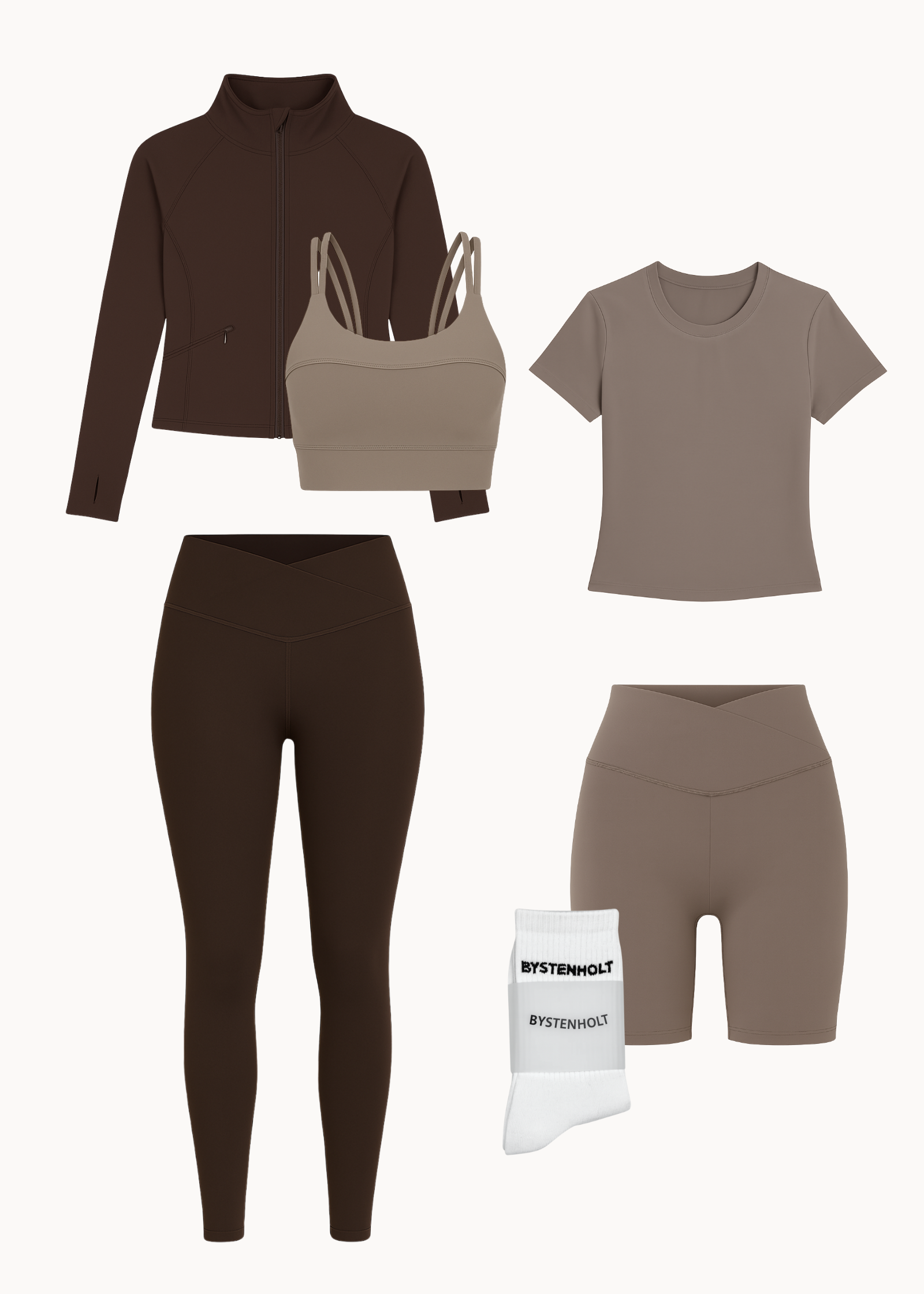 Sammensæt dit helt eget træningsoutfit i valgfrie farver med 6 dele for kun 999 kr.