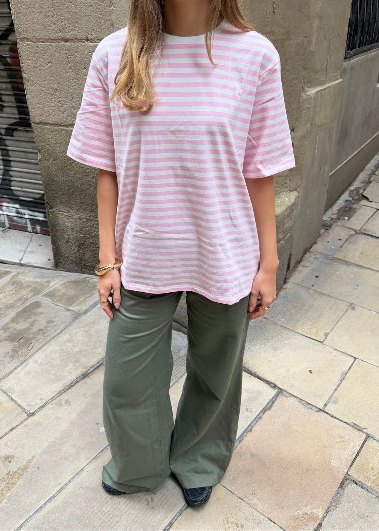 Silja Stribet T-shirt - Lyserød - ByStenholt.dk
