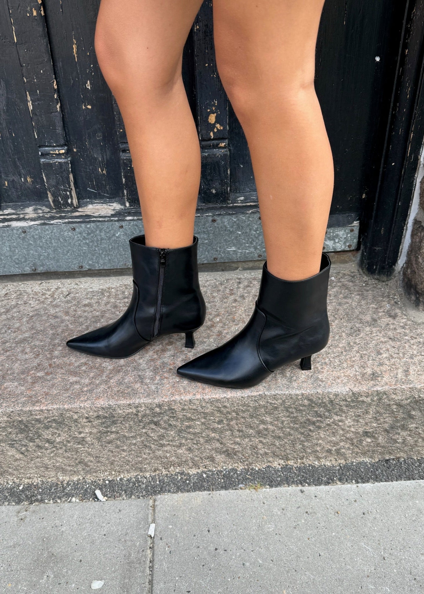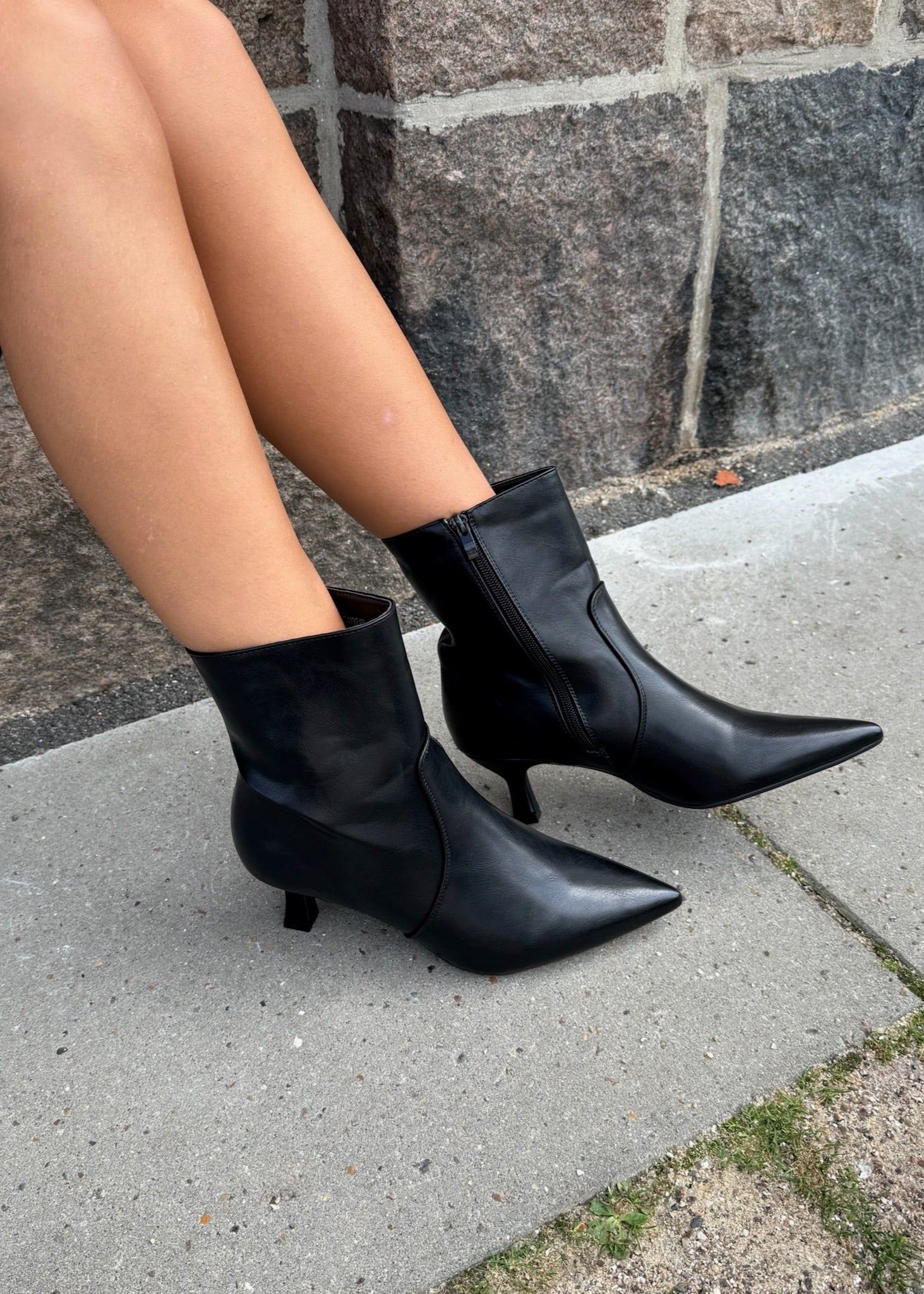 Vores nye Kitten Heel Ankelstøvler er en feminin og elegant støvle i imiteret læder med den klassiske kitten heel. Den spidse silhuet og den lave hæl gør dem både sofistikerede og behagelige at have på – perfekte til efteråret og vinterens outfits. 💫