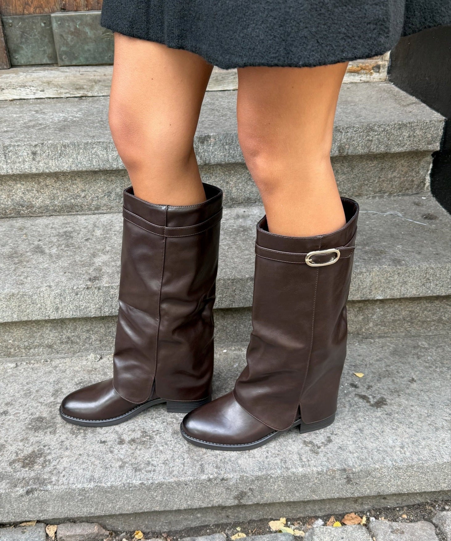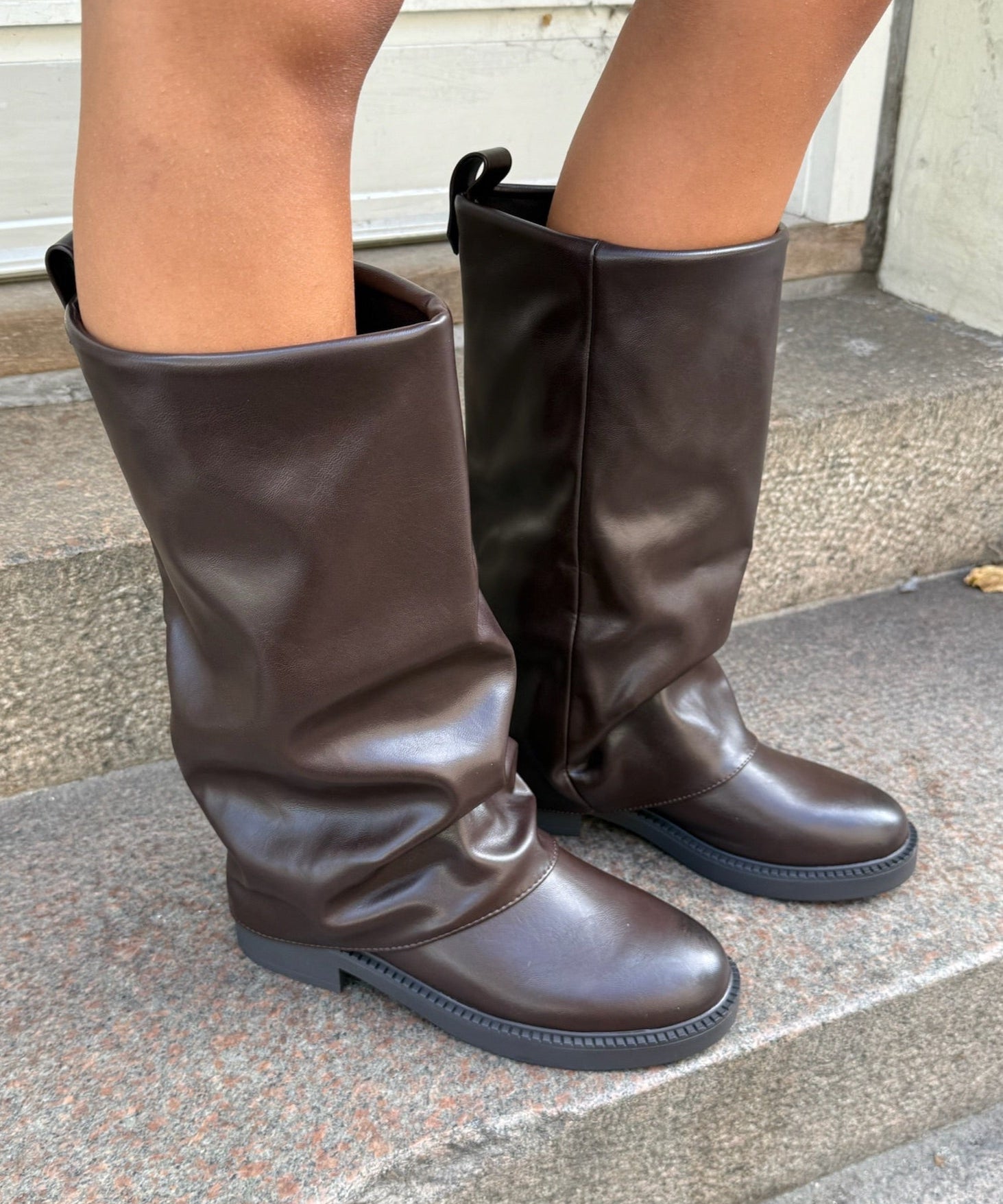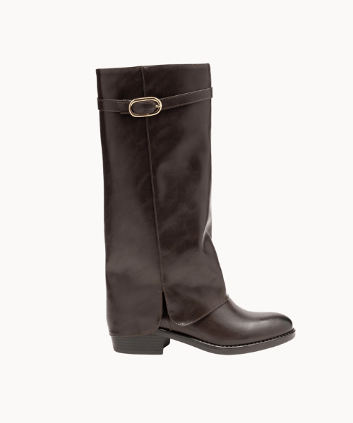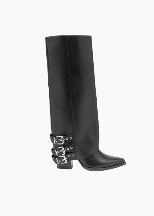 Vores nye Sophia Folded Spænde Støvle er i imiteret læder med foldet skaft og dekorative spænder, der giver et råt og stilrent udtryk. Komfortabel pasform og slidstærke materialer sikrer, at de både ser godt ud og holder hele sæsonen🖤