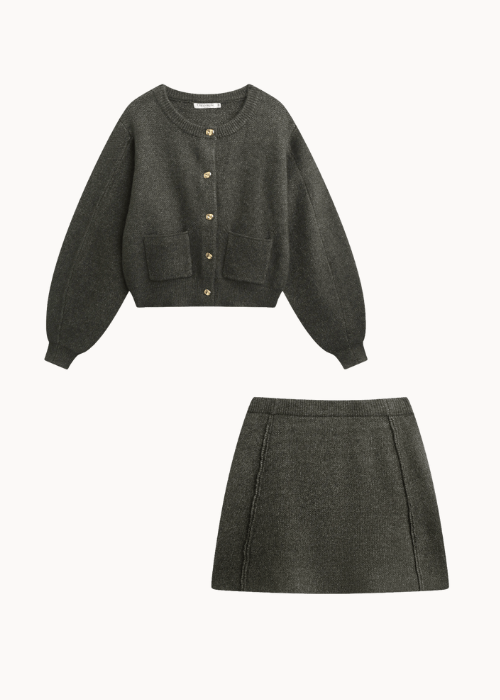 Vores nye Ella Knit sæt er et blødt og feminint striksæt bestående af cardigan med lommer og matchende nederdel. Det afslappede men stilrene design gør sættet perfekt til både hverdagsbrug og hyggelige efterårsdage🍂🤎
