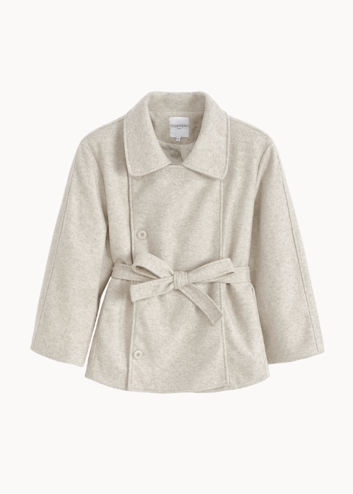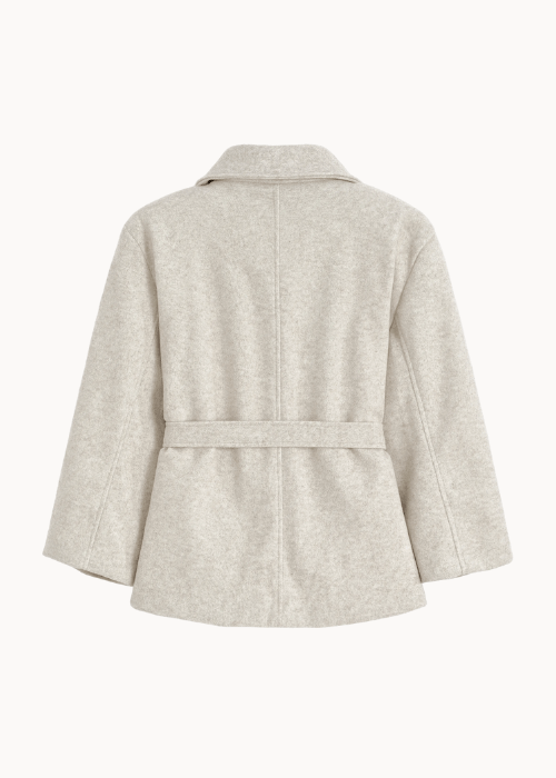 Vores nye Linea Belted Coat er en kort frakke i uldlook med bindebælte i taljen. Jakken har et feminint og tidløst design med brede revers og dobbeltradet look – perfekt til både hverdagsbrug og mere elegante anledninger🤍✨