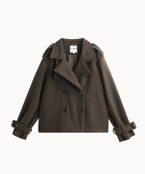 Vores nye Linea Belted Coat er en kort frakke i uldlook med bindebælte i taljen. Jakken har et feminint og tidløst design med brede revers og dobbeltradet look – perfekt til både hverdagsbrug og mere elegante anledninger🤍✨