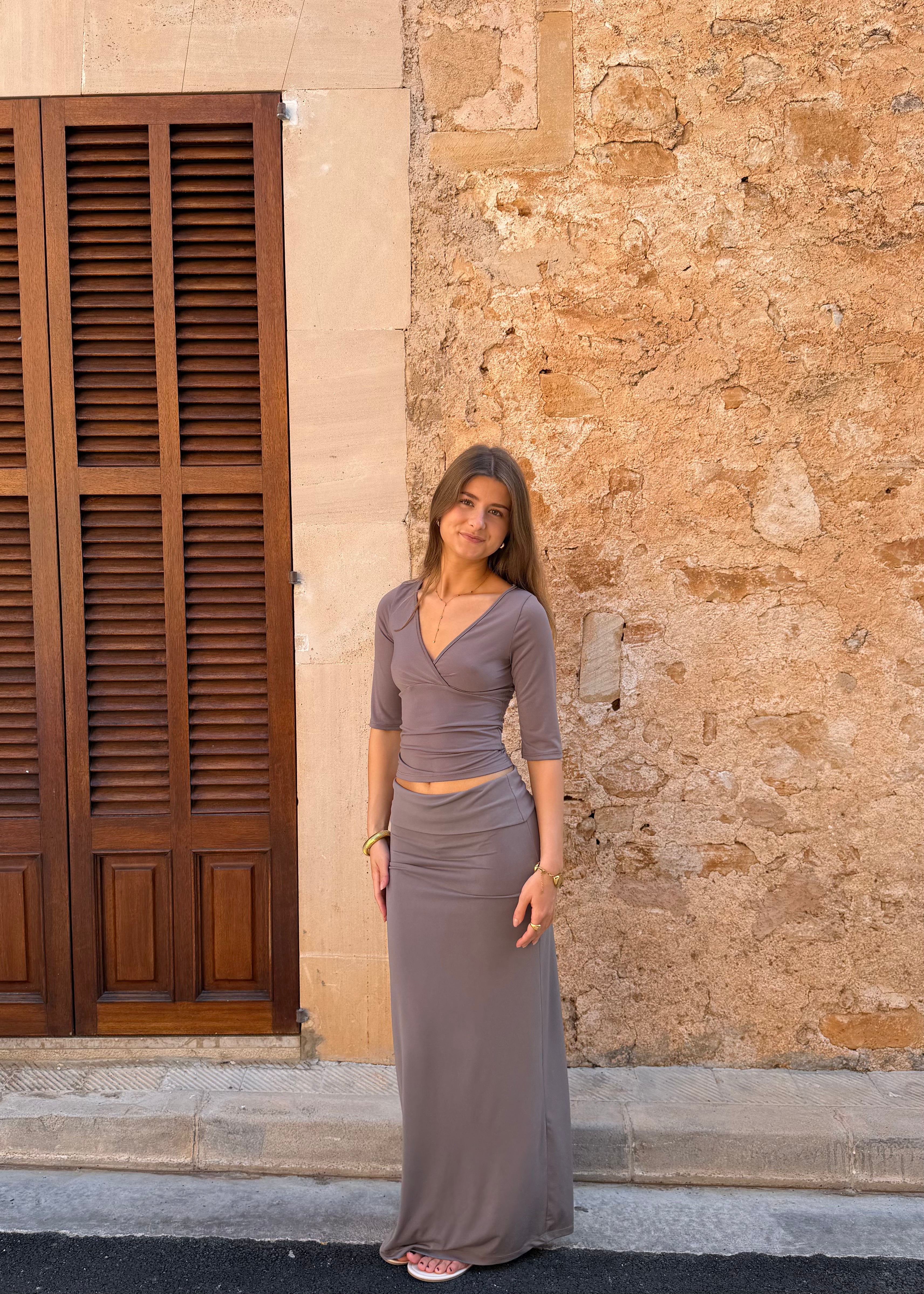 Gaia Top + Aia Nederdel Sæt - Mørkebrun - ByStenholt.dk