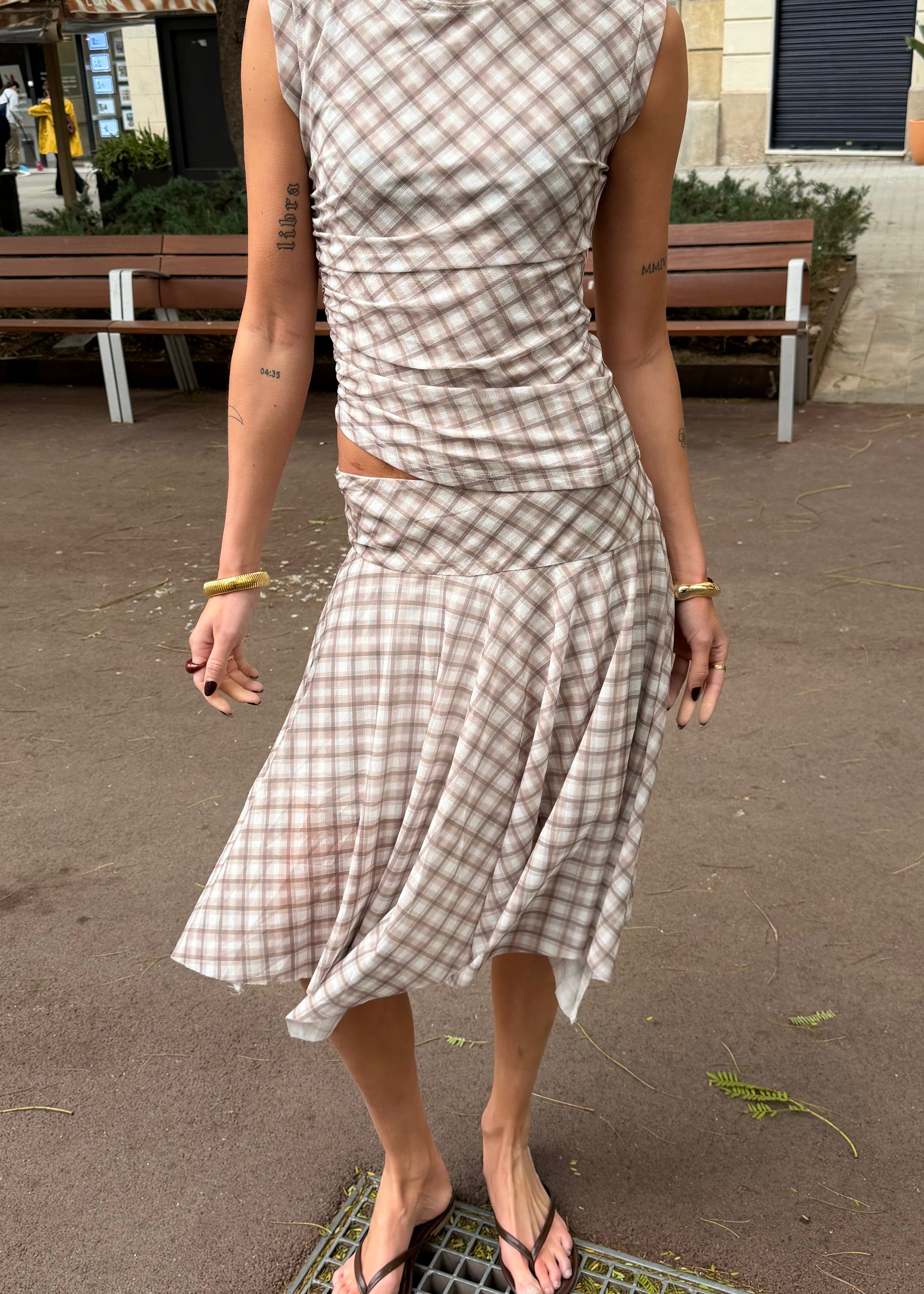 Vores Malukka Ternet Nederdel er en elegant og fin nederdel i en midi længde. Nederdelen er designet i et blødt, strækbart materiale, der ligner mesh. Nederdelen kan desuden matches med vores Maluka Ternet Top🤍