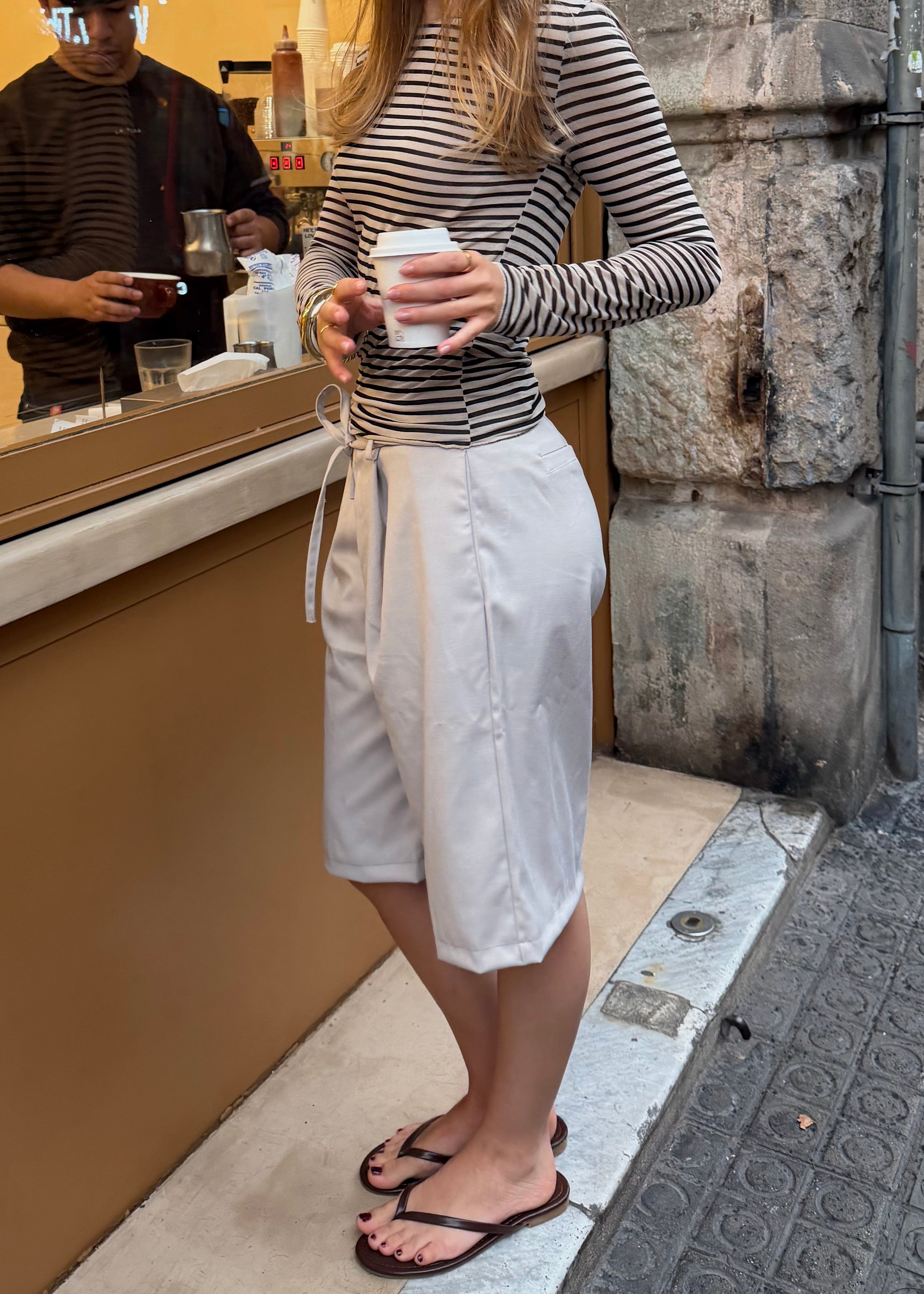 Vores Vide Bermuda Shorts er et must-have til enhver sommergarderobe. De er lavet i et lækkert materiale og har skrålommer foran, bæltestropper samt et aftageligt bindebånd, der giver et afslappet og stilrent udtryk. Shortsene har en flatterende bermuda-længde og to falske lommer bagpå, som fuldender det klassiske habit-inspirerede look 🌟