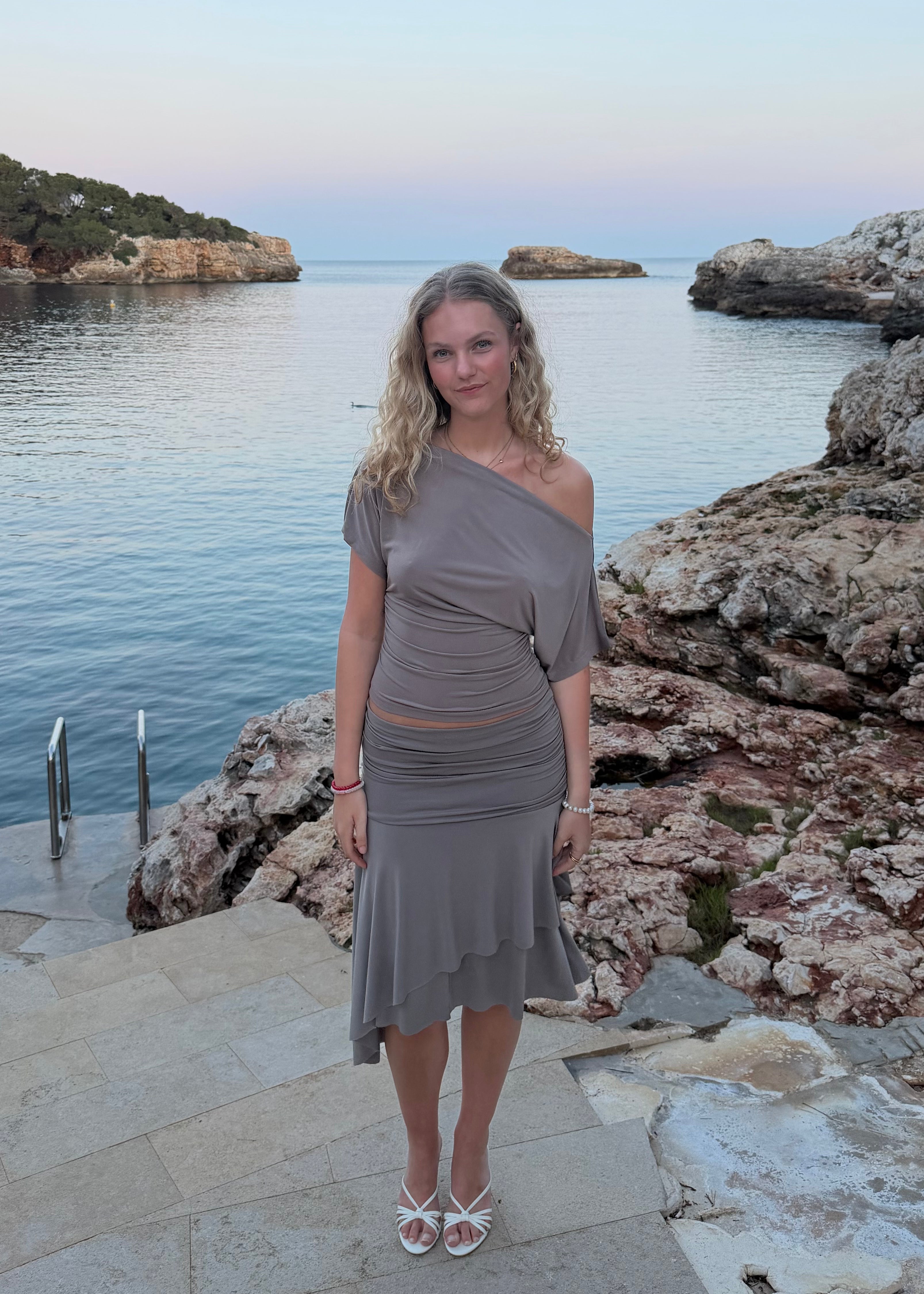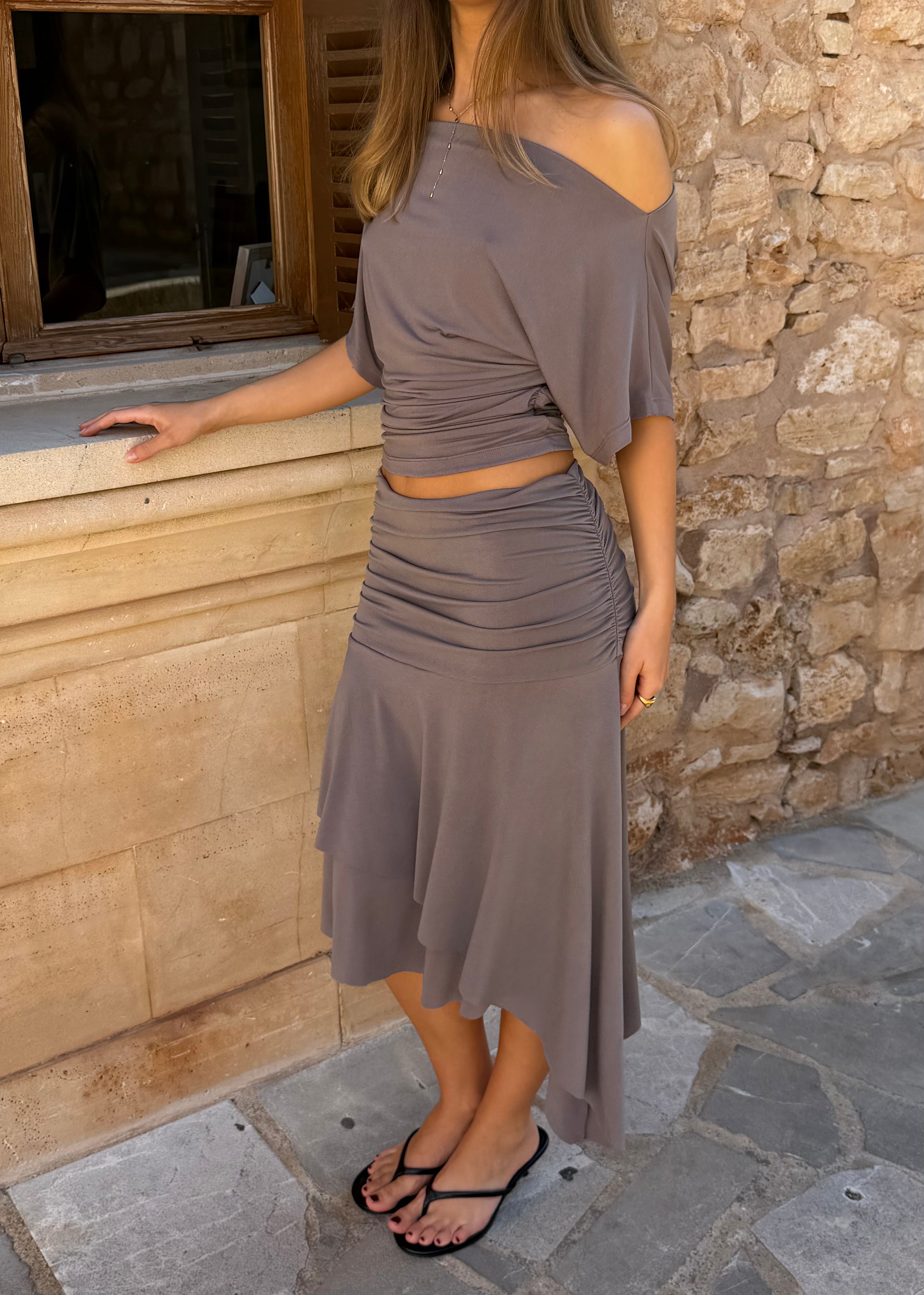 Clara Waisted Top + Aia Nederdel Sæt - Taupe - ByStenholt.dk