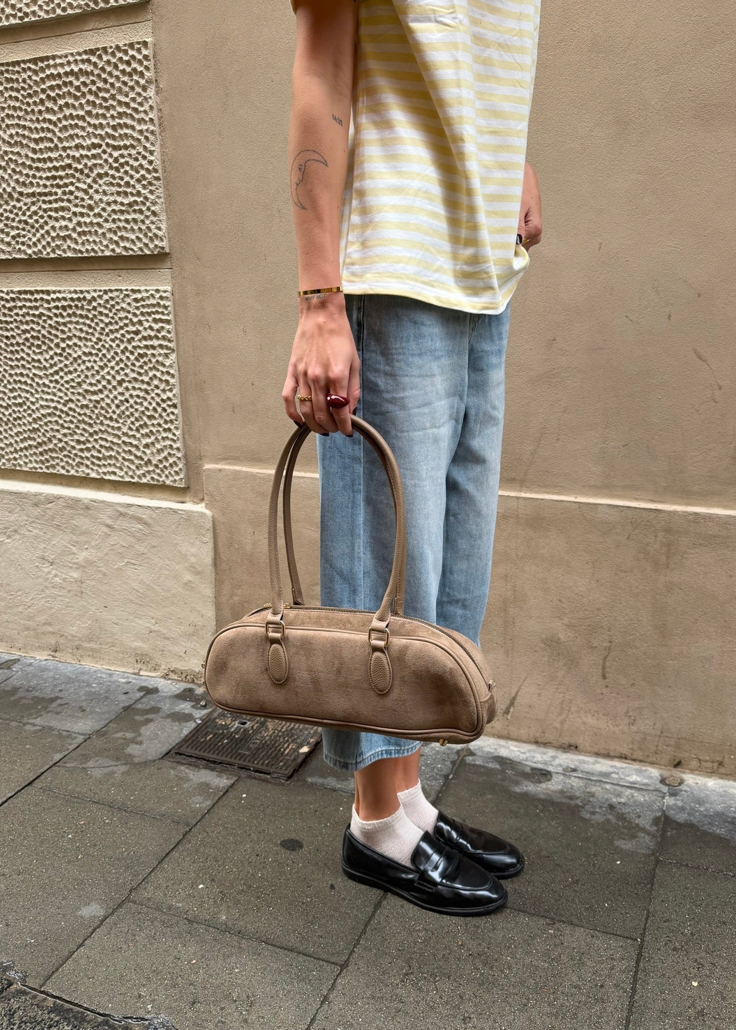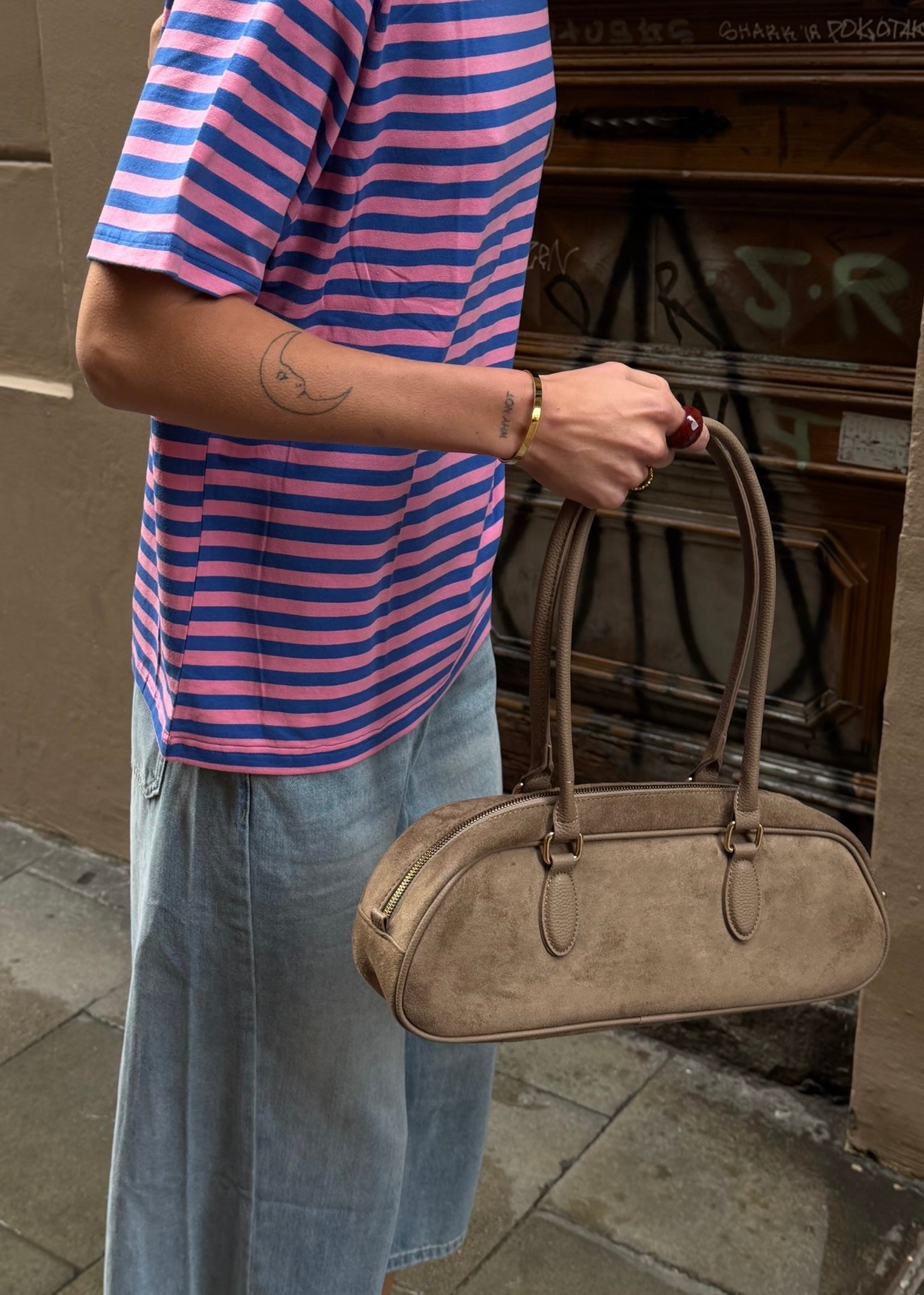 - Aflang håndtaske i faux suede
