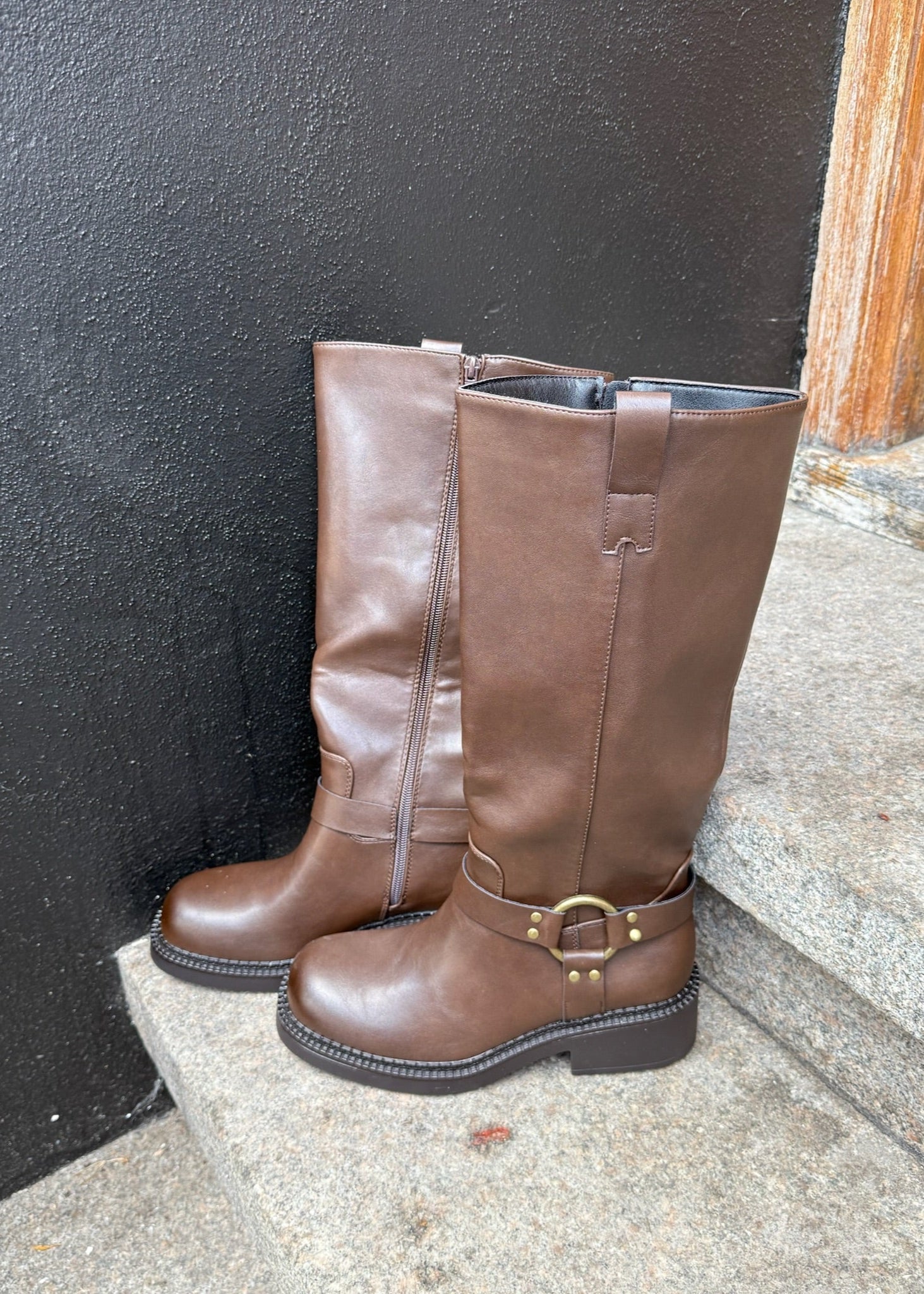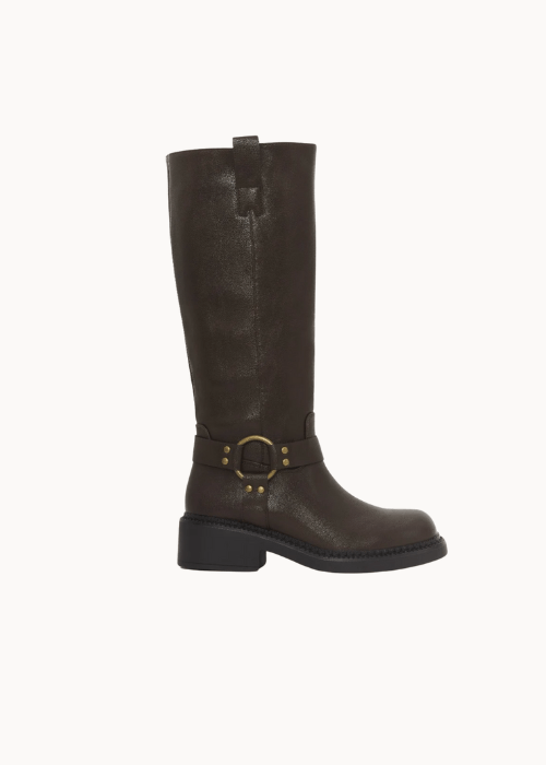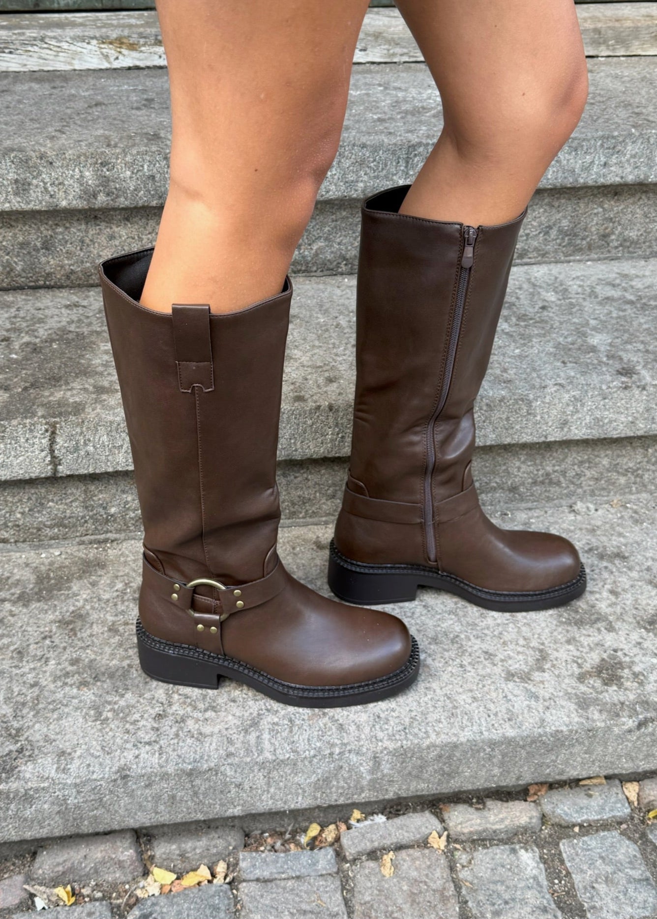 Vores nye Buckle støvler er en mellemhøj støvle i imiteret læder med mat finish. De har et enkelt, lige skaft med lynlås bagpå, som gør dem nemme at tage af og på. Den metalliske spænde og nittedetaljer giver støvlen et råt og stilrent udtryk, der passer perfekt til efteråret og vinteren. ⭐