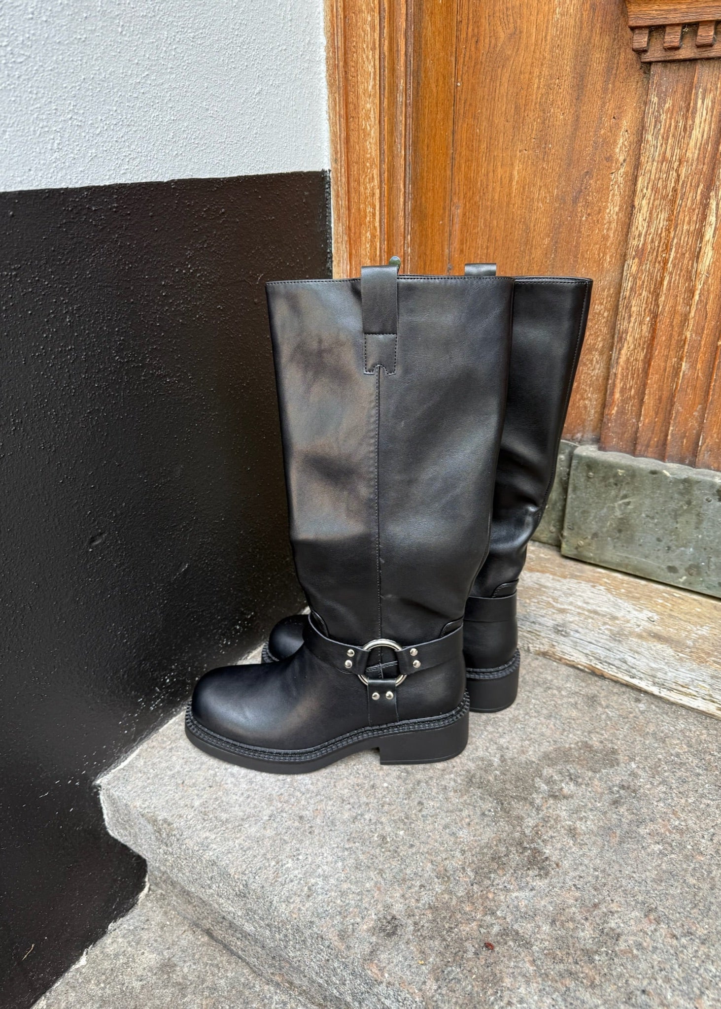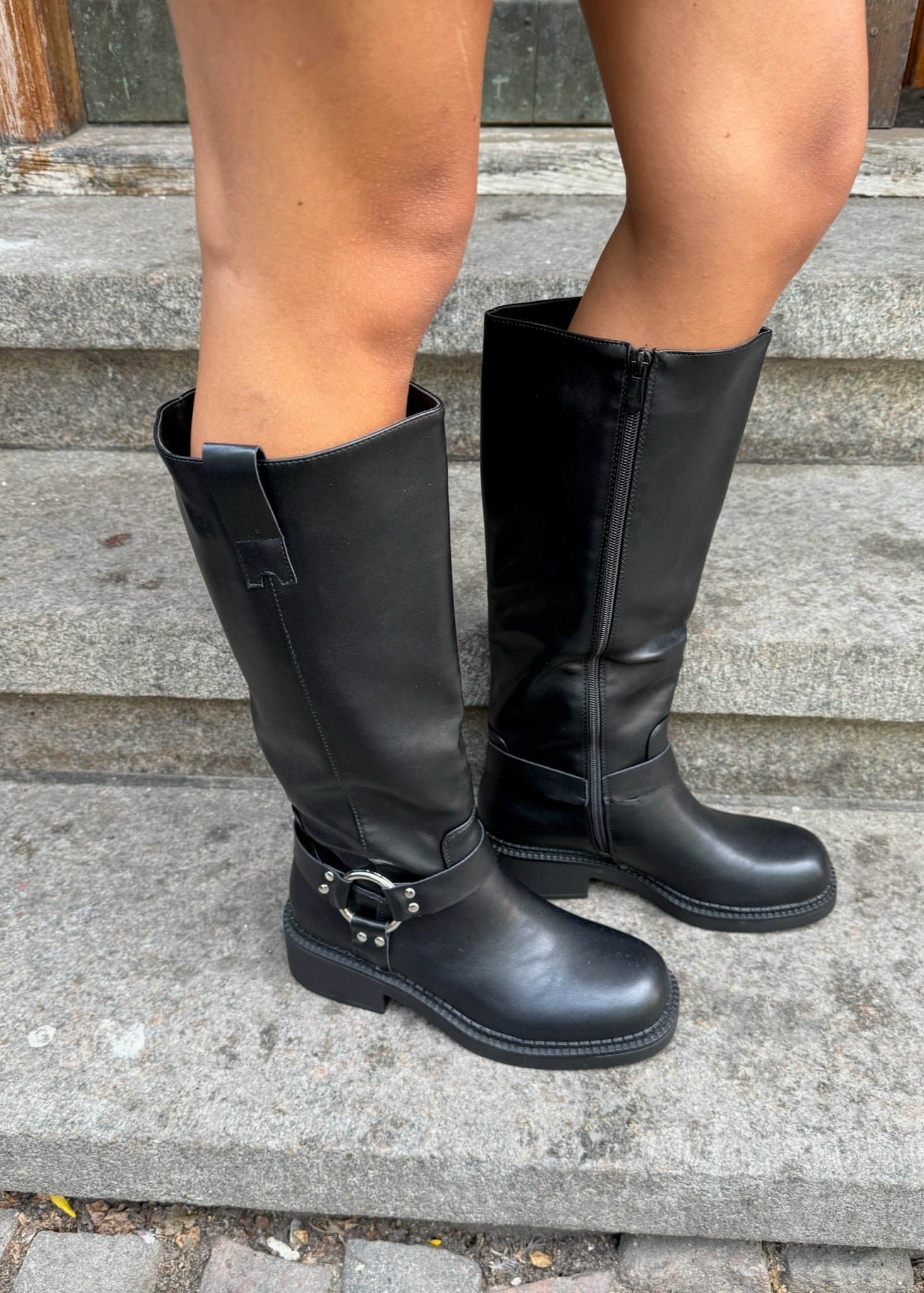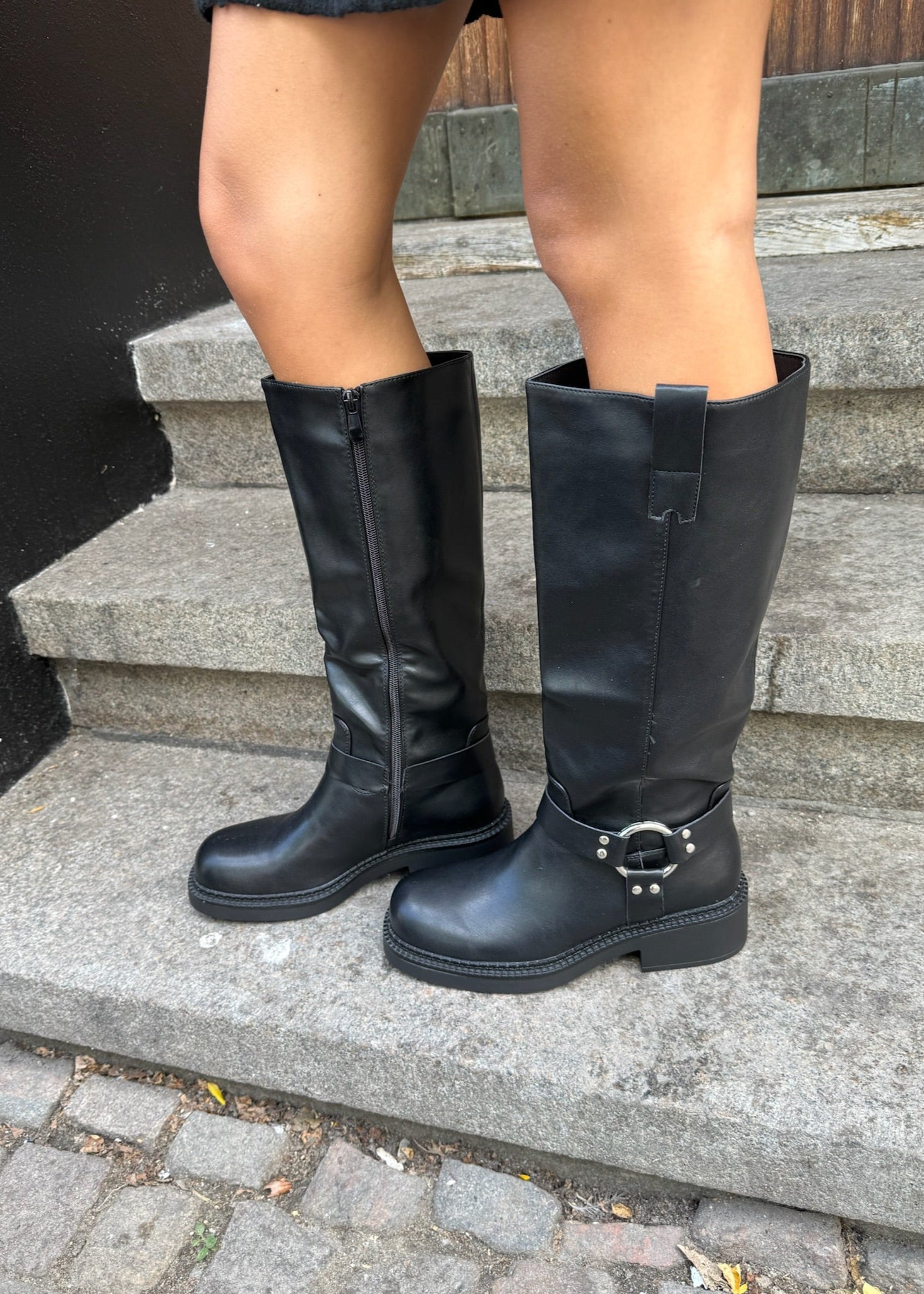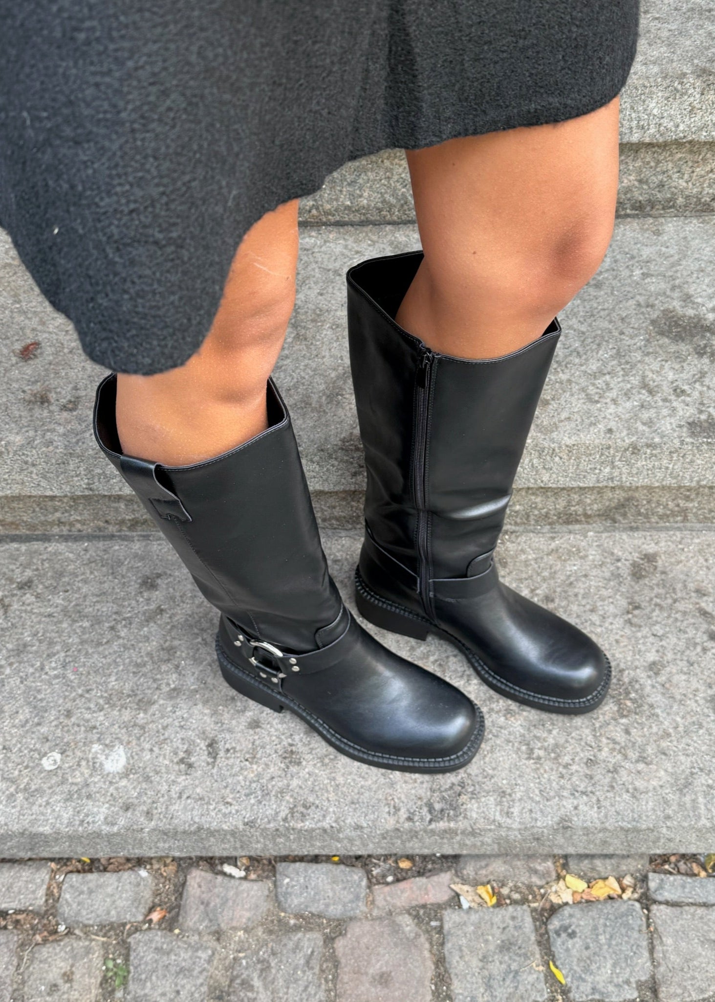 Vores nye Buckle støvler er en mellemhøj støvle i imiteret læder med mat finish. De har et enkelt, lige skaft med lynlås bagpå, som gør dem nemme at tage af og på. Den metalliske spænde og nittedetaljer giver støvlen et råt og stilrent udtryk, der passer perfekt til efteråret og vinteren. ⭐