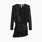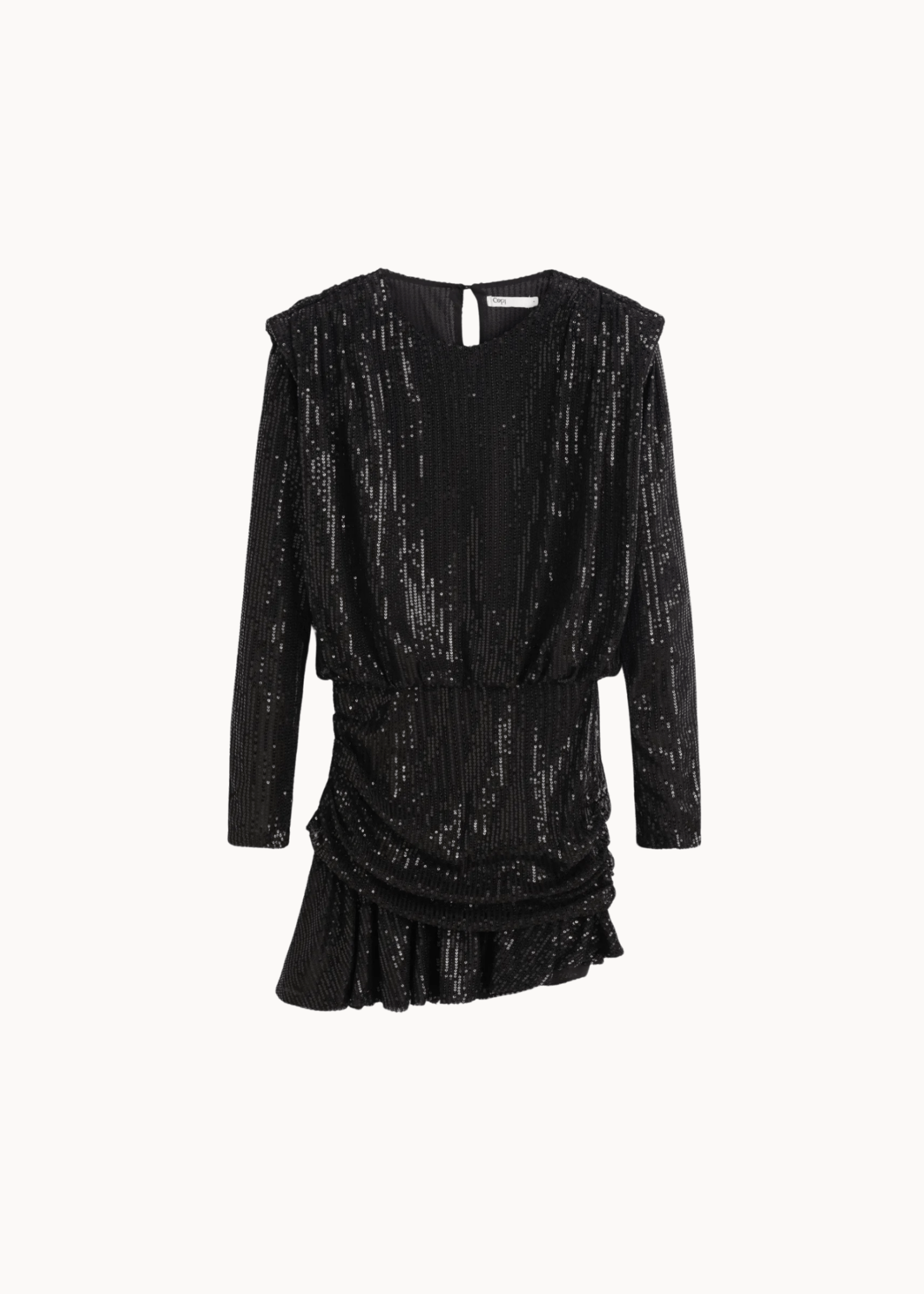 Celina Paillet Mini Kjole er din nye go-to festkjole, når looket skal være glamourøst og strålende. Den er dækket af glimtende pailletter i en elegant champagnefarve, der fanger lyset smukt fra alle vinkler. Kjolen har lange ærmer, en flatterende talje og et feminint draperet skørt med asymmetrisk flæsedetalje for et eksklusivt og legende udtryk. Perfekt til julefrokoster, nytårsaften, bryllupper og andre særlige begivenheder, hvor du ønsker at skinne.✨