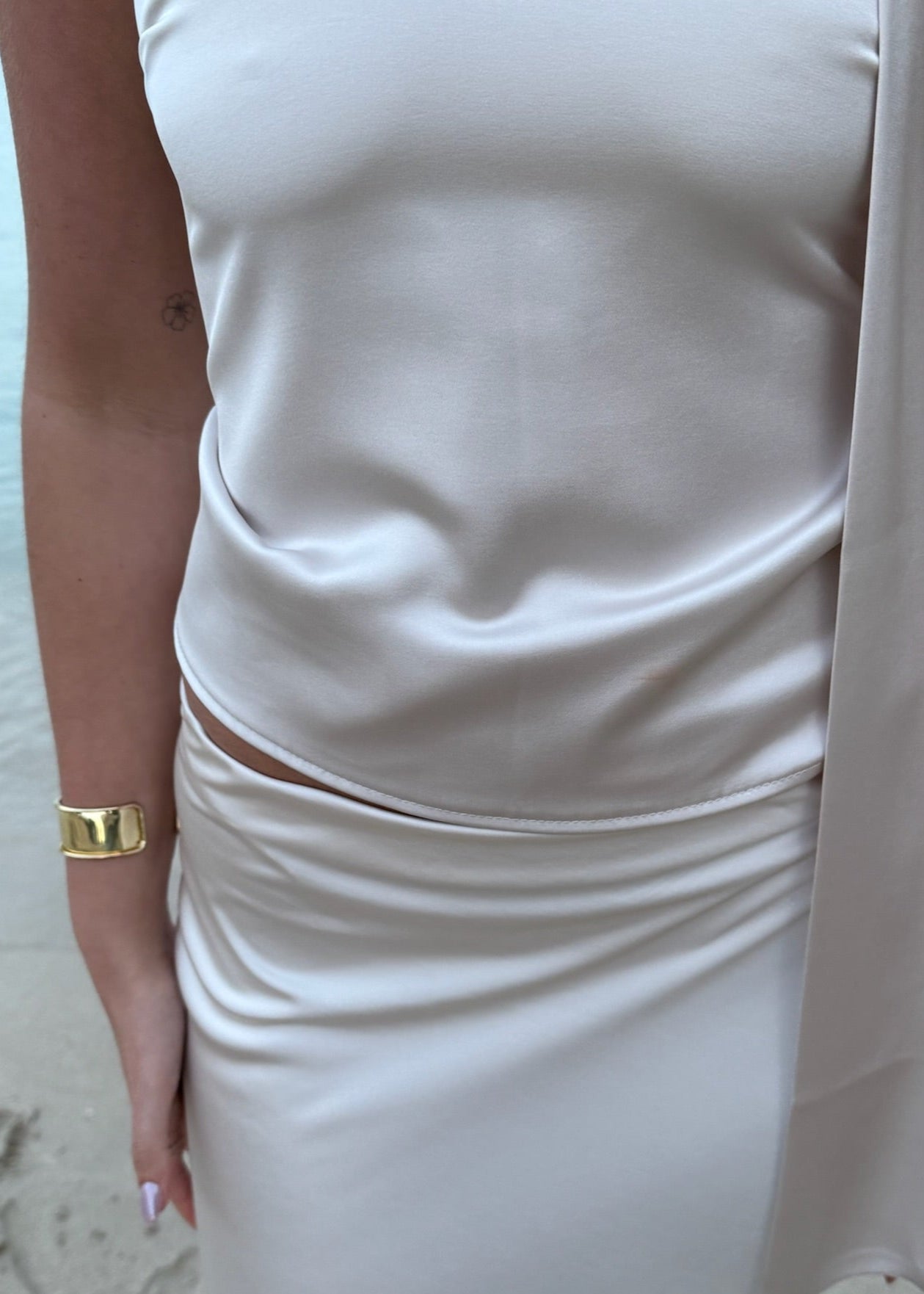 Satin Top med Åben Ryg - Creme - ByStenholt.dk