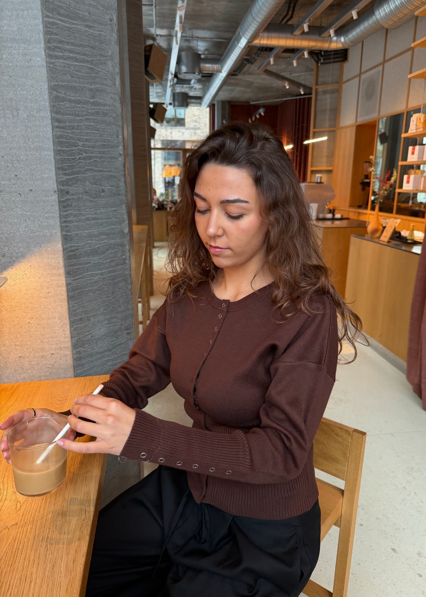 Eline Fitted Cardigan - Mørkebrun - ByStenholt.dk