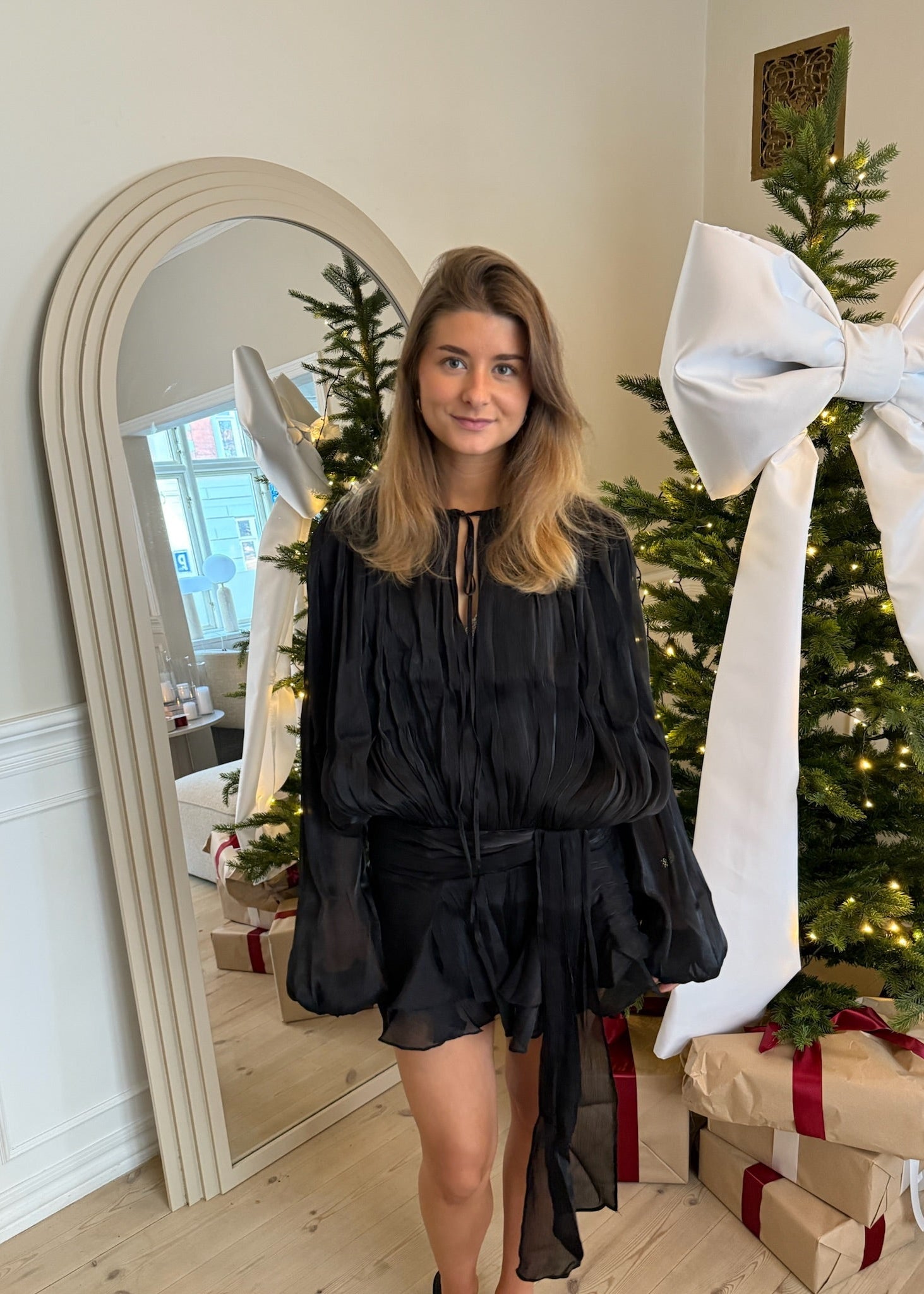 Vores Flair Satin Kjole er indbegrebet af elegance med et moderne twist. Kjolen er designet i et glansfuldt satin-lignende materiale, der falder smukt og giver en luksuriøs fornemmelse. De draperede detaljer i taljen og det let asymmetriske snit skaber en flatterende silhuet, mens de lange, bløde ærmer giver et sofistikeret udtryk. Perfekt til festlige anledninger, hvor du ønsker et look, der kombinerer femininitet og eksklusivitet✨