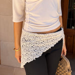 Vores fine Hæklet Tørklæde er et elegant tørklæde, som kan bruges som accessories udover bukser, i håret eller noget helt tredje. Perfekt til både hverdag og hyggelige aftener, hvor komfort og stil går hånd i hånd 🤍✨