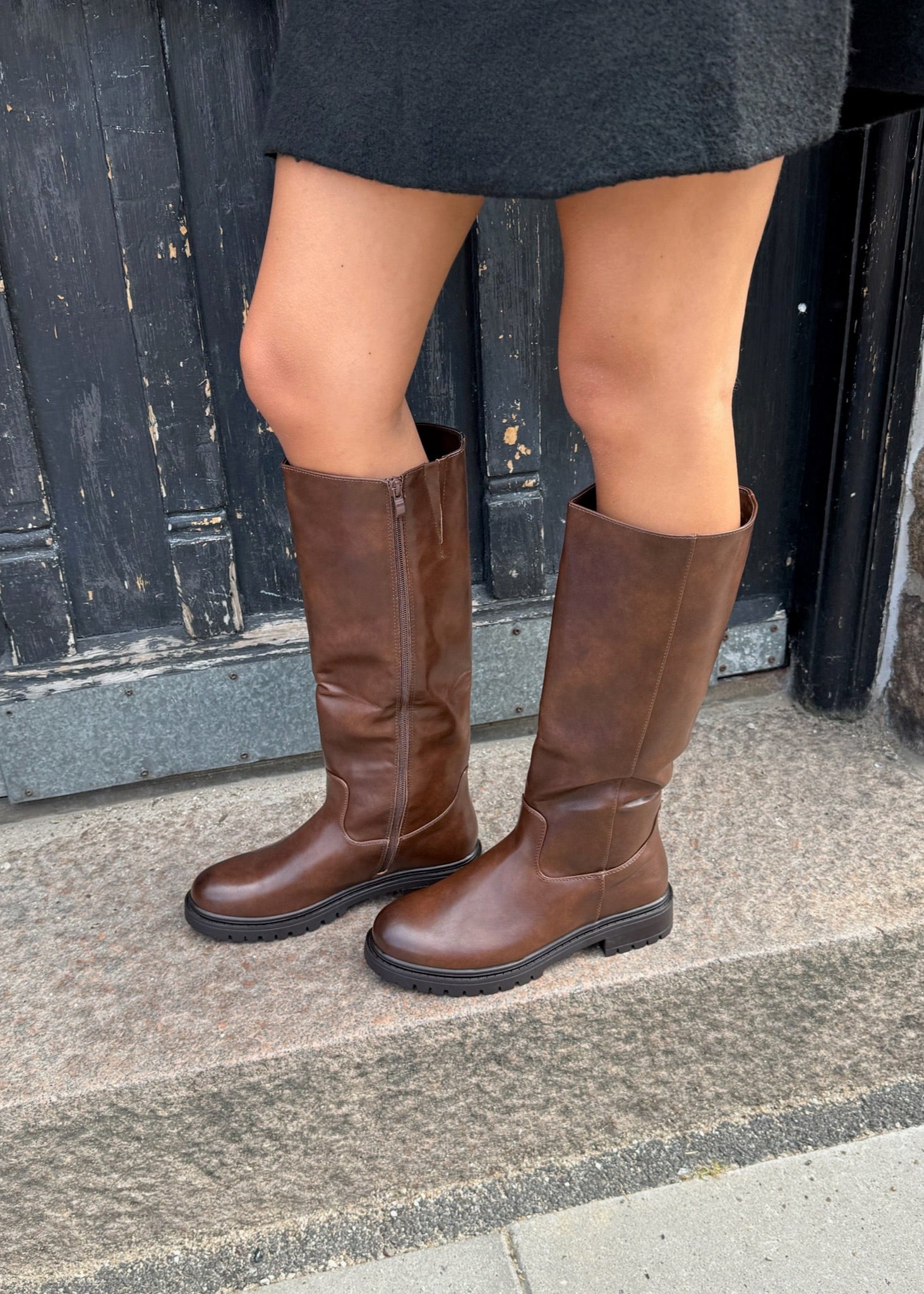 Vores Klassiske støvler er en høj støvle i imiteret læder med kraftig rillet sål. De er både rå og stilrene – perfekte til efteråret eller vinterens byture. Støvlerne giver optimal komfort, har skridsikker sål og er lavet i slidstærke materialer.🤎