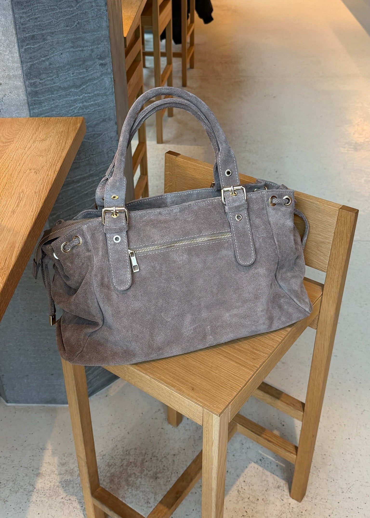 London Tasken i Ruskind er en elegant skuldertaske fremstillet i 100 % ægte ruskind 🤎💫 Tasken har justerbare stropper og kan strammes ind i siderne, så formen nemt kan tilpasses efter behov.
