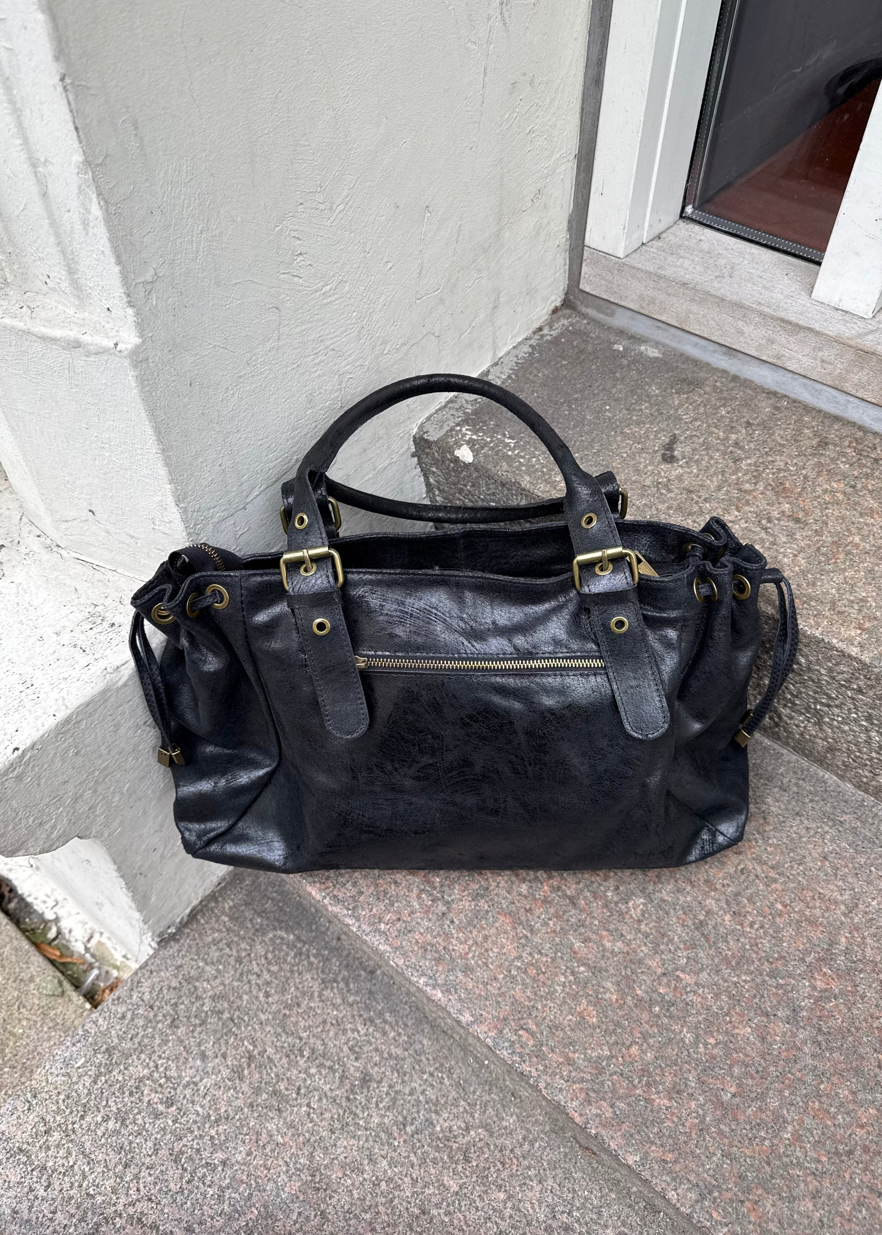 Vores nye London Taske er en elegant skuldertaske i 100% ægte læder, designet i en begrænset udgave op til Black Friday. Tasken har justerbare stropper og kan strammes ind i siderne. Tasken har plads til en 13-tommer computer. Tasken har et stort rum, hvor der er plads til bl.a. en computer, bøger mm. Inde i tasken er der både lommer med og uden lynlås💫🤎