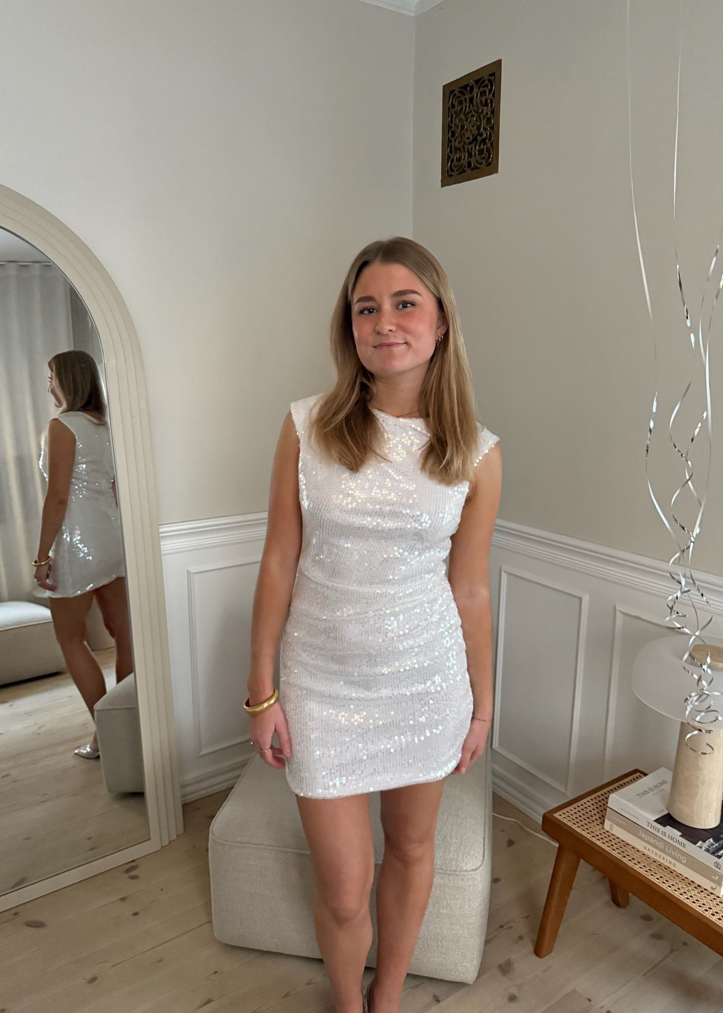 Luna Paillet Mini Kjolen er en elegant, funklende kjole designet til sæsonens festligheder. Den sølvglitrende paillet-overflade giver et eksklusivt og moderne udtryk, mens det draperede frontpanel skaber en smigrende silhuet med blød elegance. Med sin tidløse, ærmeløse pasform og klassiske mini-længde er Luna perfekt til julefrokoster, nytårsaften og alle de aftener, hvor du vil lyse rummet op✨