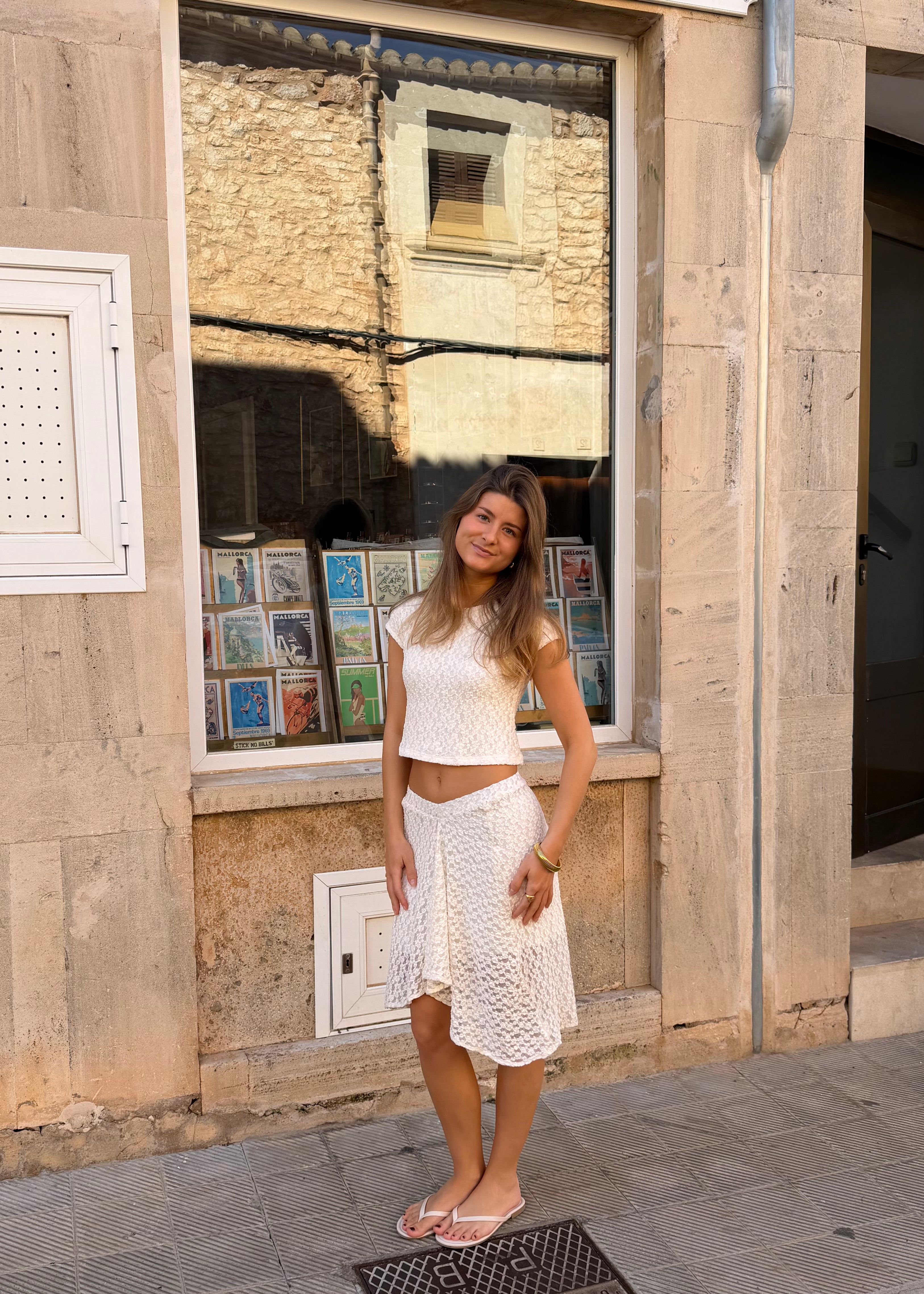 NORMA BLONDE T-SHIRT & MIDI NEDERDEL SÆT 🤍 (SPAR PENGE)