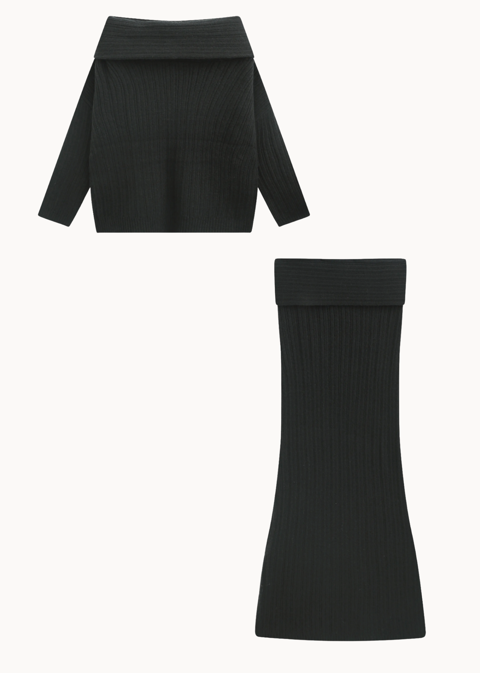 Sæt: Indeholder Off-shoulder strik og strik maxi-nederdel