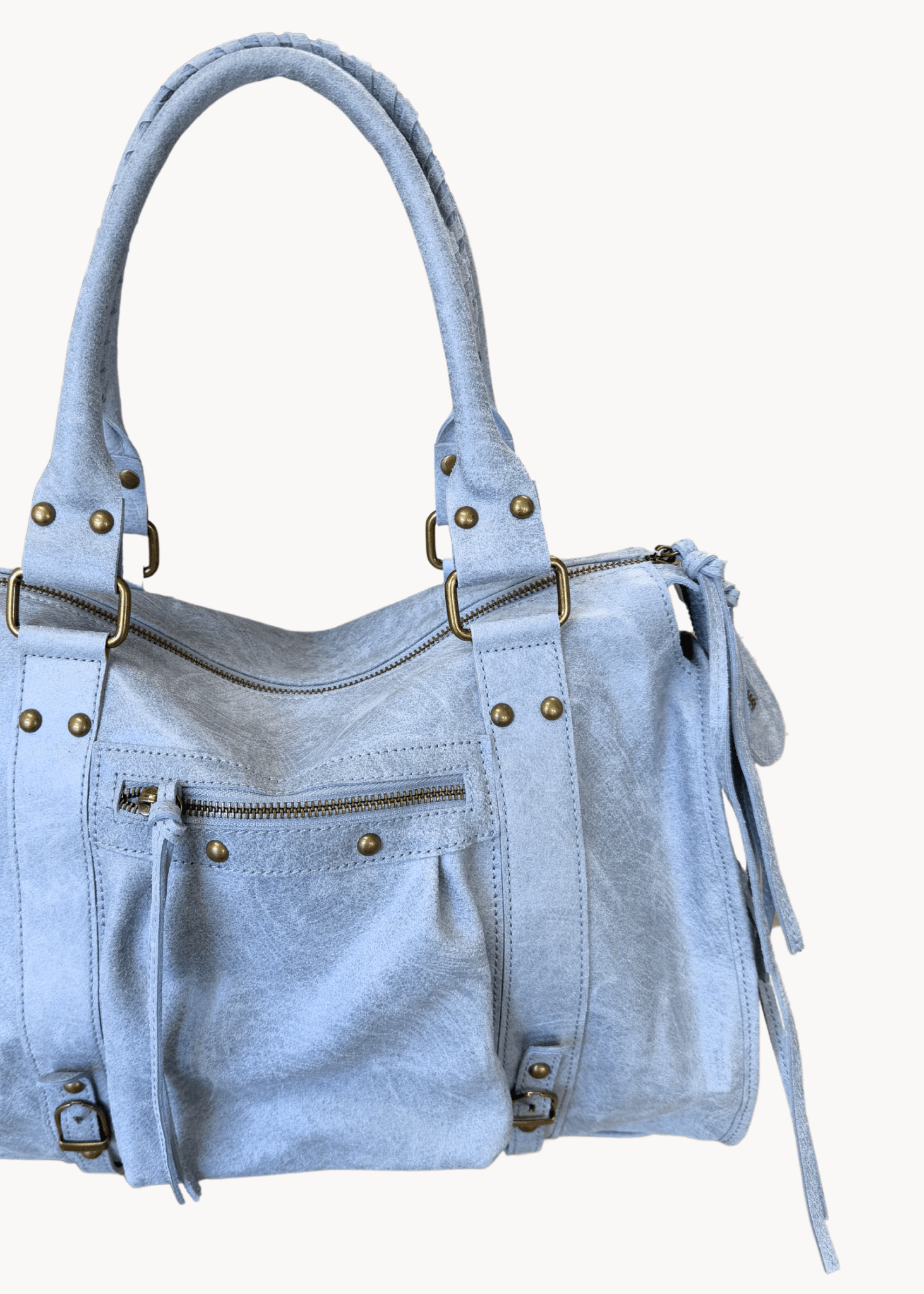 Paris Tasken i lyseblå er en smuk og elegant skuldertaske, som har plads til en 13-tommer computer (i str. large) i 100% ægte læder. Tasken har både håndtag og en rem, så man sagtens kan bære tasken på skulderen. Derudover har tasken et stort rum, hvor der er plads til bl.a. en computer (str. large), bøger mm. Inde i tasken er der både lommer med og uden lynlås💫